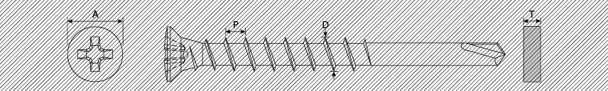 Диаметр резьбы: 4.3 мм с крупным шагом для быстрого ввинчивания